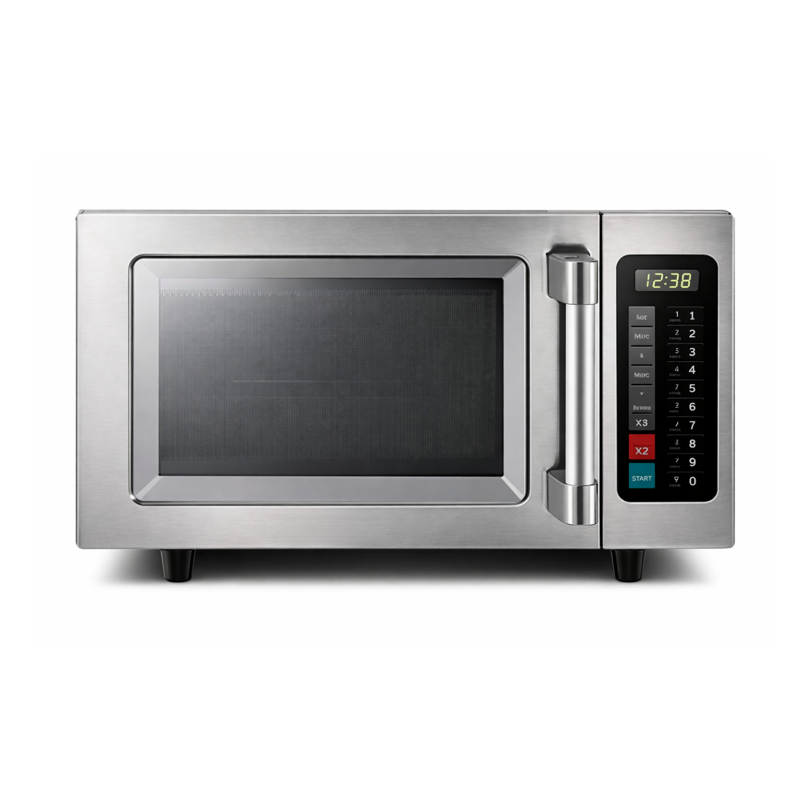 Horno microondas de trabajo mediano, para calentar alimentos preparados o alimentos que tengan preparaciones especiales en dicho equipo. Construcción completa en acero inoxidable, tanto exterior como interior.