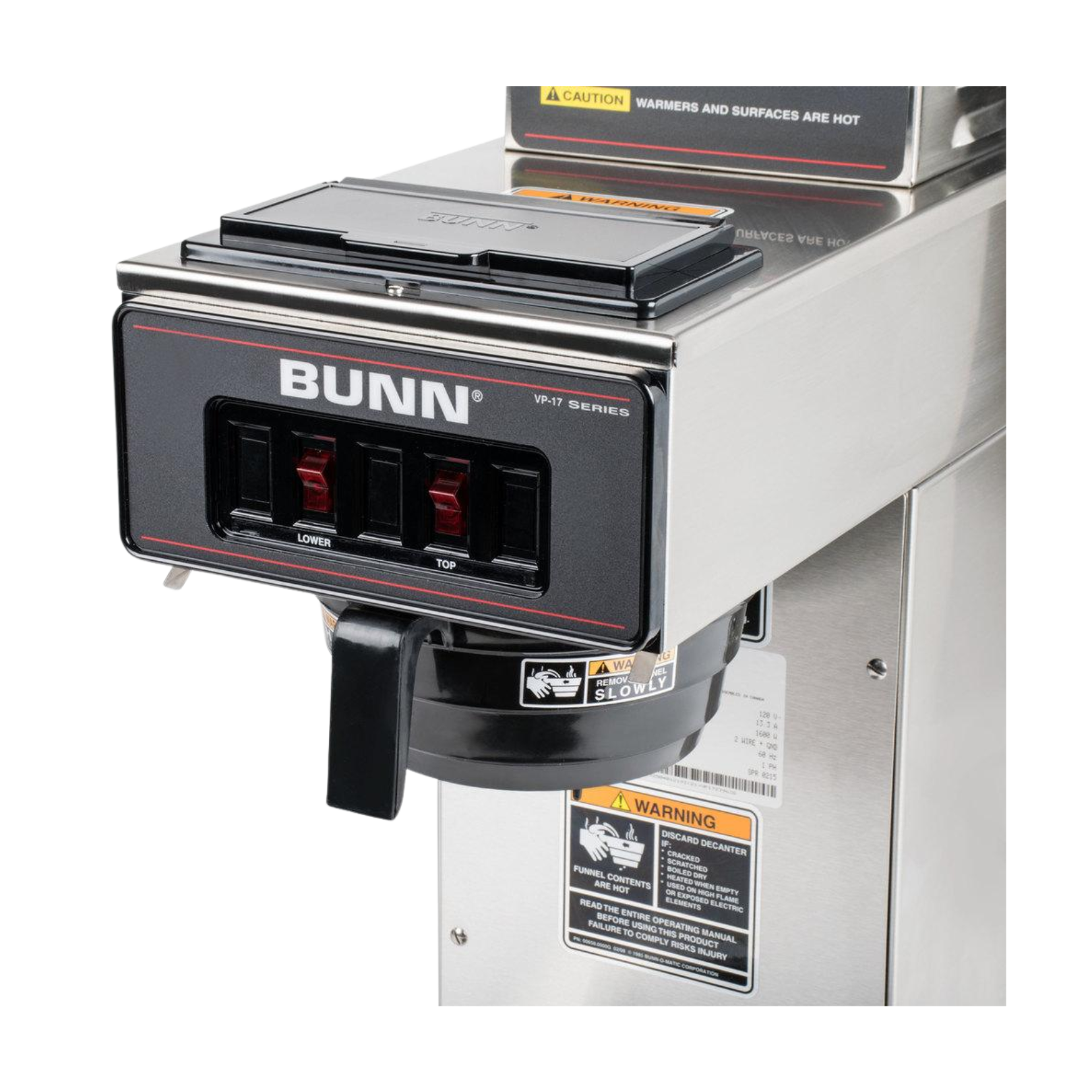 Sus dos hornillas de calentamiento cuentan con un switch off/on individual, para uso de jarras decanter o de acero plástico BUNN (de venta por separado).