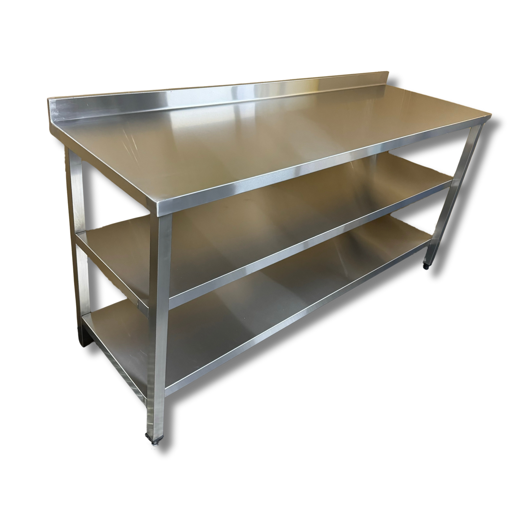 Mesa de Trabajo en Acero Inoxidable con piso y entrepaño de 2.00 metros