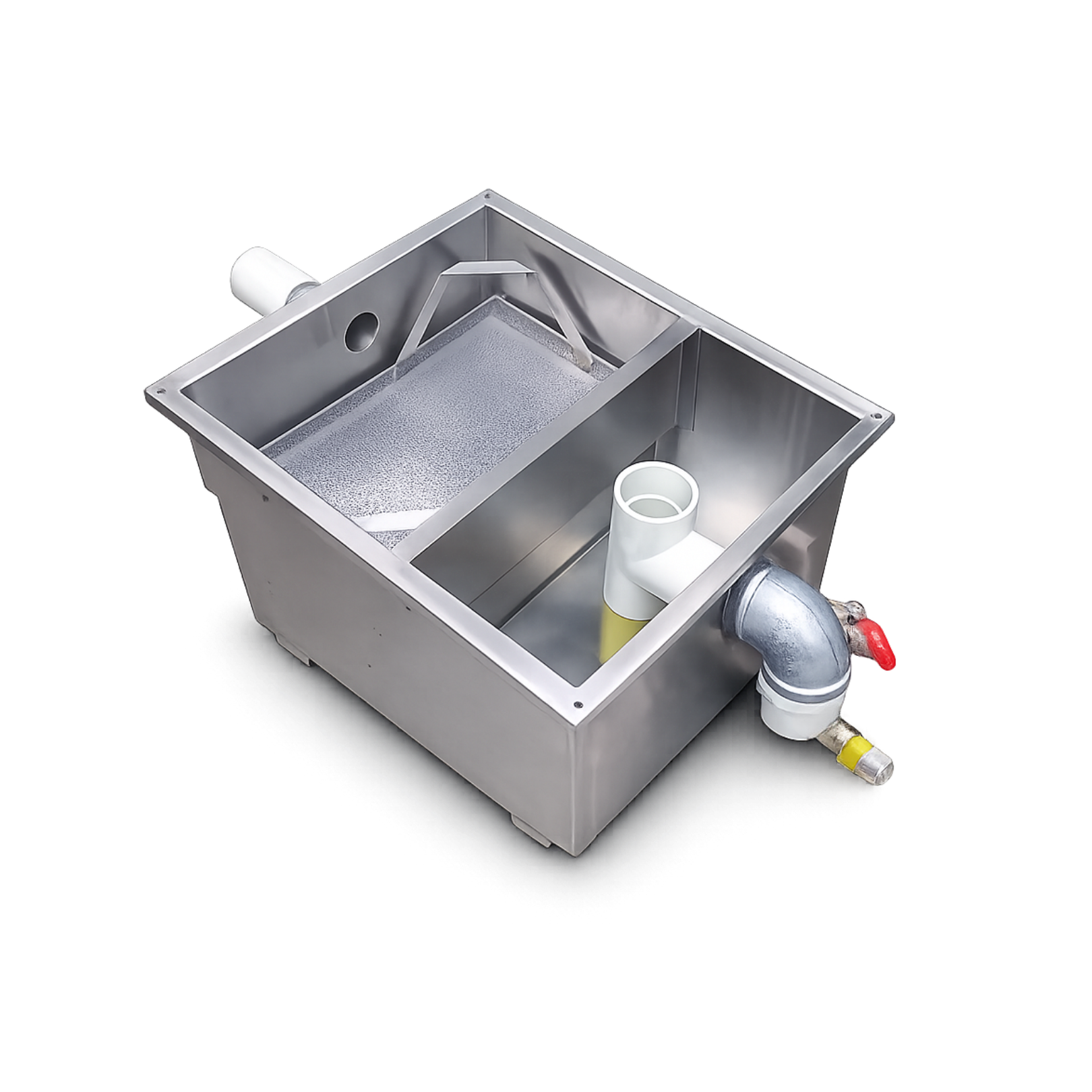 Nuestra trampa de grasas está diseñada para garantizar higiene, durabilidad y cumplimiento de normativas en cocinas industriales, restaurantes y establecimientos de alimentos. Su construcción robusta permite una separación eficiente de grasas, aceites y sólidos, evitando taponamientos y malos olores en el sistema de drenaje.