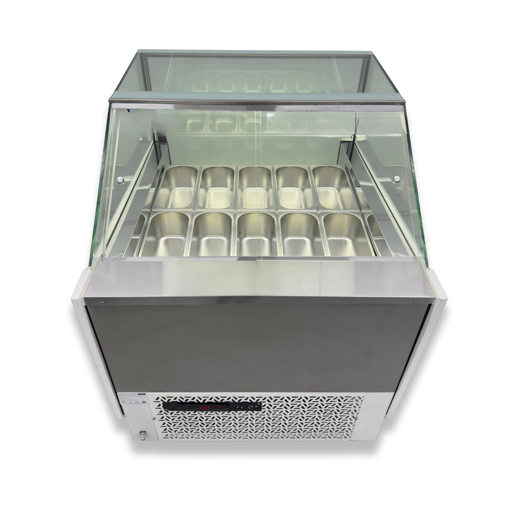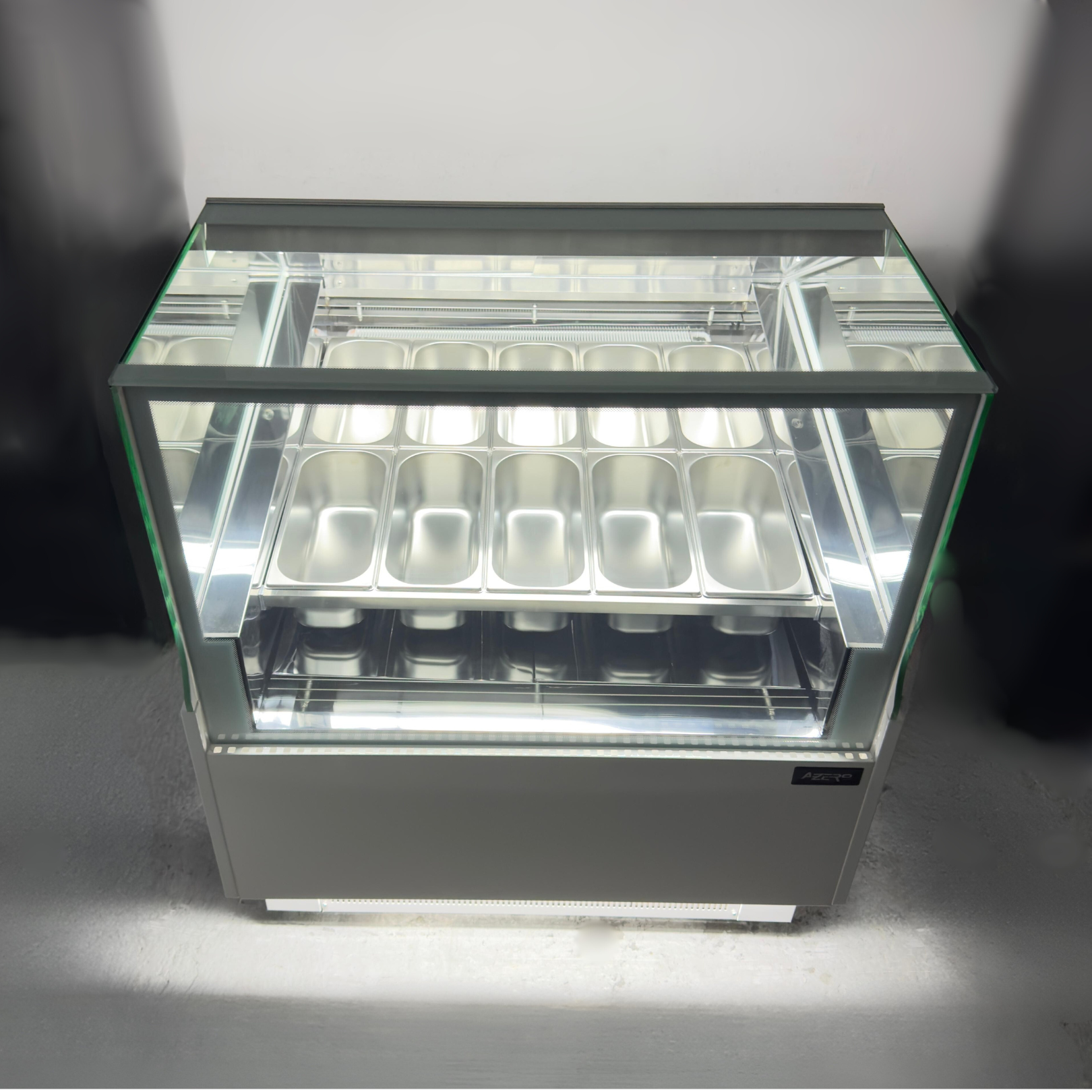 Lleva la exhibición de tus Helados o Gelato al siguiente nivel con nuestra Vitrina Expositora de Diseño Italiano, creada para ofrecer máxima visibilidad, conservación óptima y eficiencia energética. Su tecnología avanzada y materiales de alta calidad garantizan un rendimiento excepcional, resaltando cada sabor de manera irresistible.