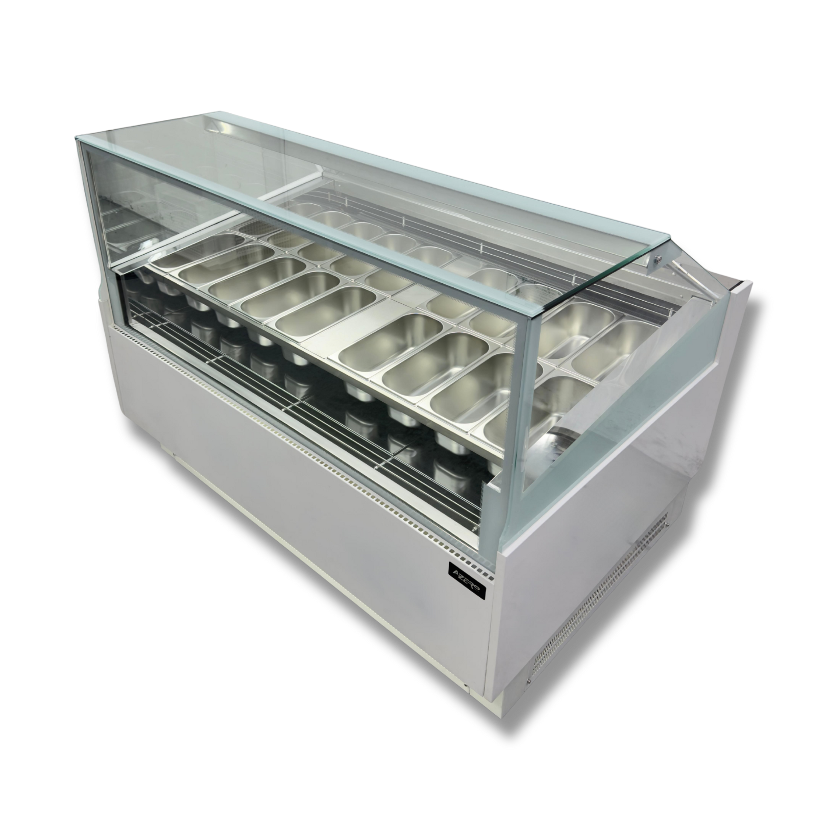 Lleva la exhibición de tus Helados o Gelato al siguiente nivel con nuestra Vitrina Expositora de Diseño Italiano, creada para ofrecer máxima visibilidad, conservación óptima y eficiencia energética. Su tecnología avanzada y materiales de alta calidad garantizan un rendimiento excepcional, resaltando cada sabor de manera irresistible.