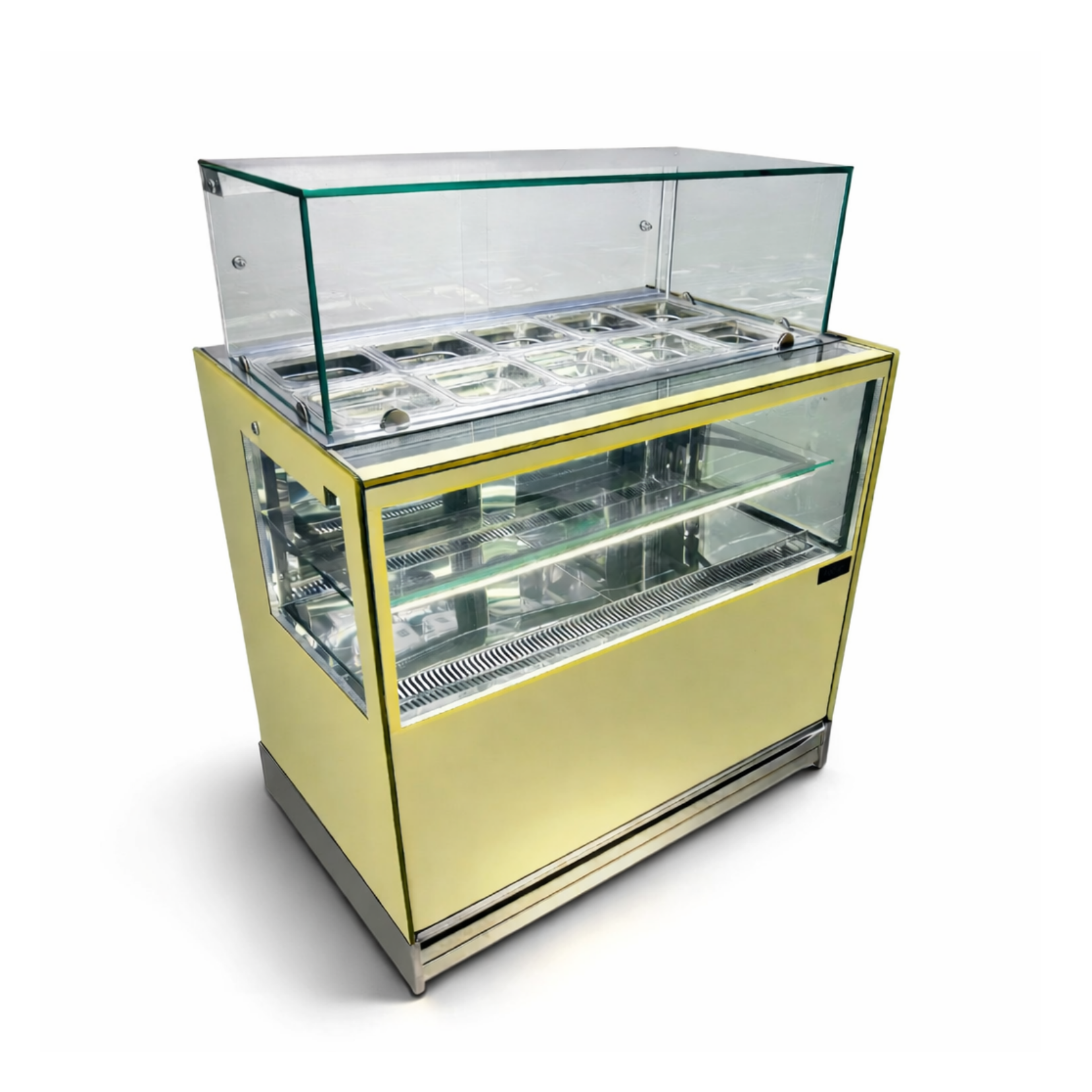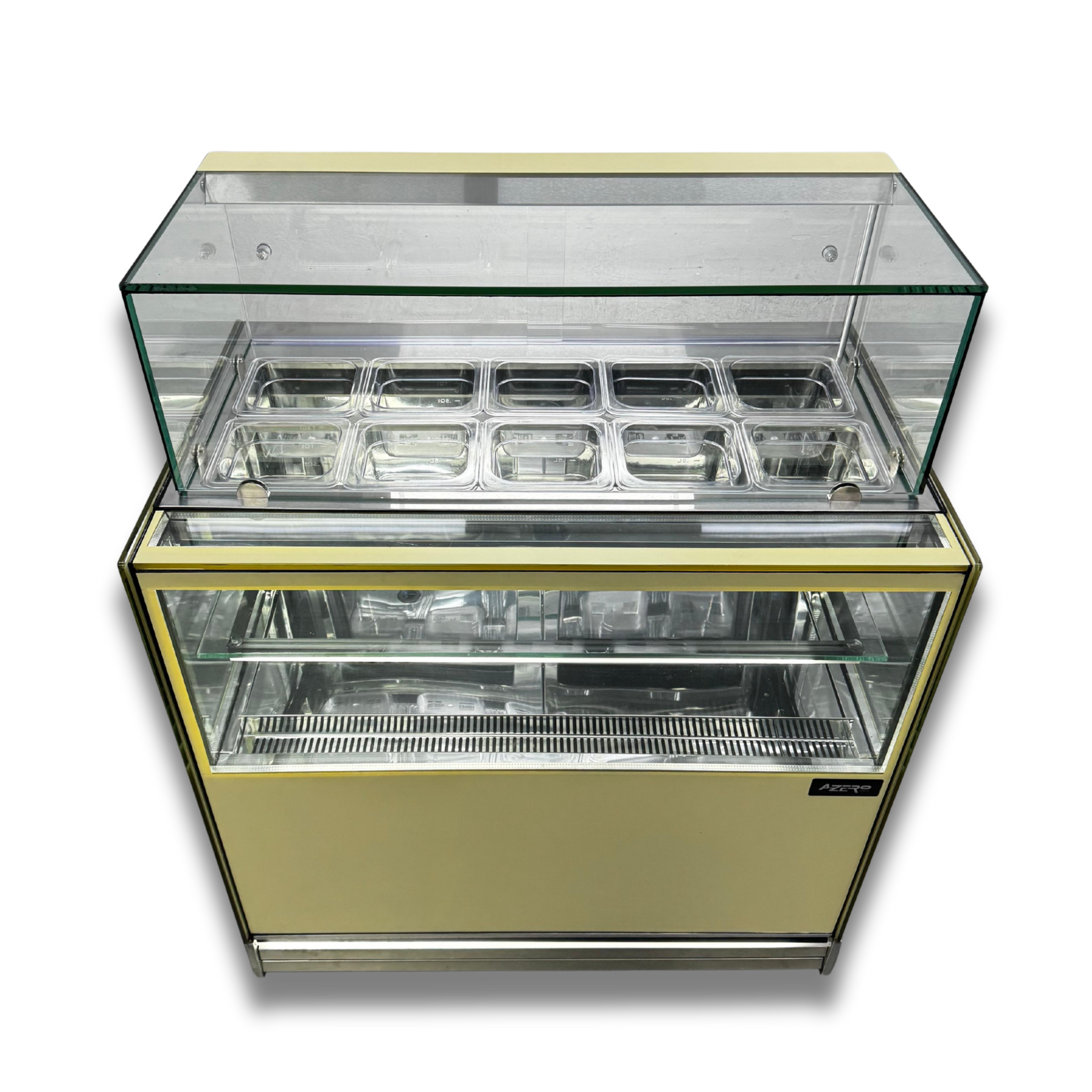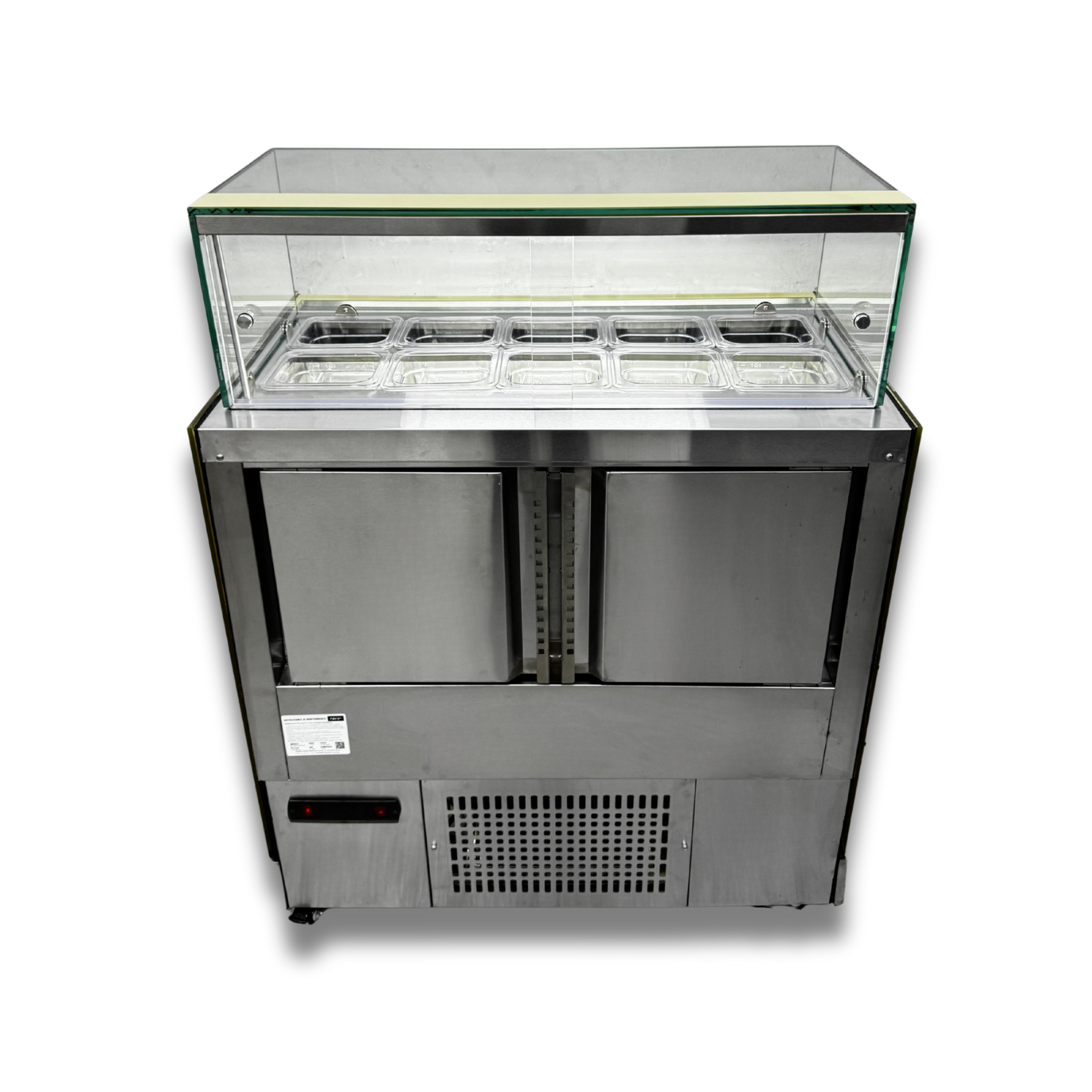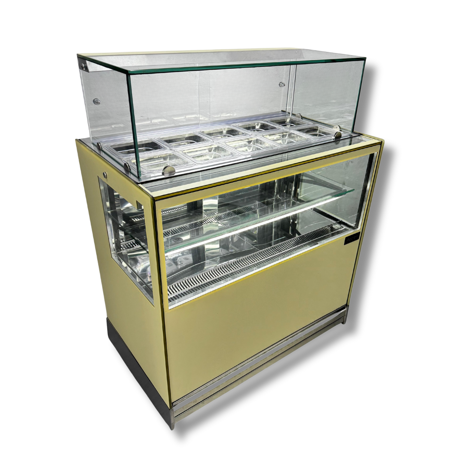 Optimiza la presentación y conservación de tus toppings con nuestra Vitrina refrigerada para Toppings. Esta vitrina está diseñada para mantener frescos y accesibles una variedad de ingredientes para tus helados, yogurt helado u otros postres congelados. Con capacidad para 8 azafates refrigerados, ofrece espacio suficiente para una selección diversa de frutas frescas. La puerta de acceso proporciona una fácil reposición de los productos y un acceso conveniente al almacenamiento adicional. Además, su diseño refrigerado garantiza que los toppings se mantengan frescos y listos para su uso durante todo el servicio. Construida con materiales duraderos y un diseño robusto, esta vitrina refrigerada es ideal para entornos comerciales de alto tráfico. Mejora la experiencia del cliente y agiliza la preparación de tus postres congelados.