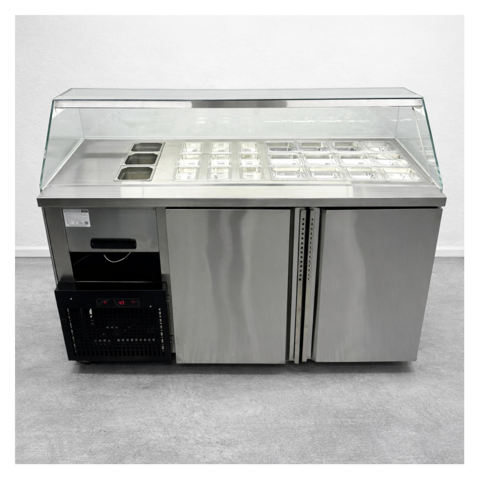 ✅ Bodega refrigerada: Almacenamiento adicional con puertas batientes de acero inoxidable.